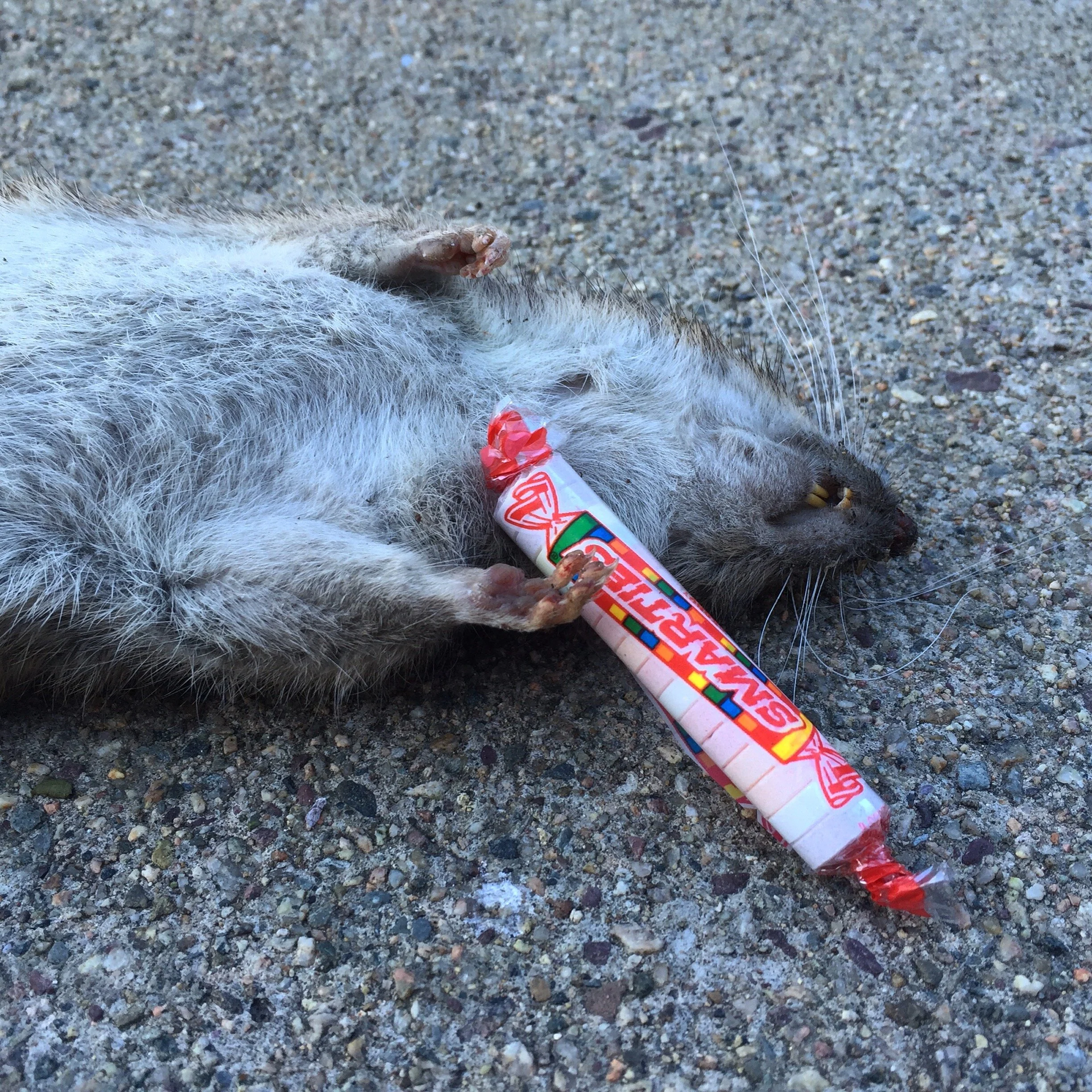 It’s possible this rat died with a roll of Smarties leaning against her body, but I’d like to think someone staged this scene as a type of cultural commentary about the nature of a young adulthood in Allston. Smarties were ubiquitous when I was a kid: given out by teachers as rewards, present by the horde after every trick-or-treating trip, and found in many summer camp care packages. Rats, on the other hand, I associate heavily with living in Allston, where I often see them scurrying across the sidewalk at night. Like the minion drawings and their dark accompanying text, the juxtaposition of candy from my childhood and the reality of rats in my adult life creates irony. In this scene, I also see a simile; like the dead rat now unable to eat the candy she would’ve loved to consume, I see Smarties and am reminded of a childhood I can only dream of having back—a time when I didn’t have to worry about paying bills, affording groceries, or dodging rats trying to scamper over my feet. Or perhaps, like many people living in Allston, I’ve been conditioned by nearly 20 years in an education system that’s encouraged me to read meaning into and think critically about everything I come in contact with, instead of just being able to see a dead rat next to a piece of candy. There’s definitely some humor in that, too.