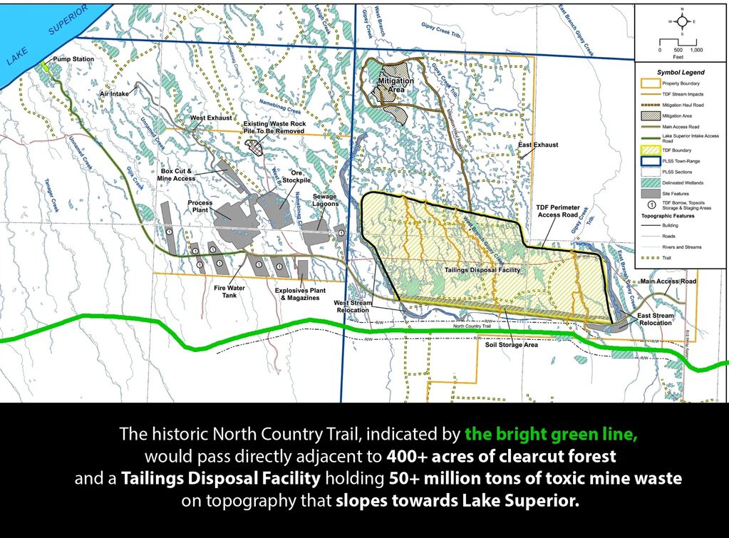 TDFs are among the most massive structures on Earth. Copperwood’s would measure 323 acres wide and 171 feet high — that’s 244 football fields of waste stacked 20 feet taller than the Statue of Liberty from toes to torch tip. This thing would tower over the landscape and be visible from scenic overlooks miles away (see comment 35). But most importantly, the facility would be erected on topography sloping towards Lake Superior, less than two miles downstream.