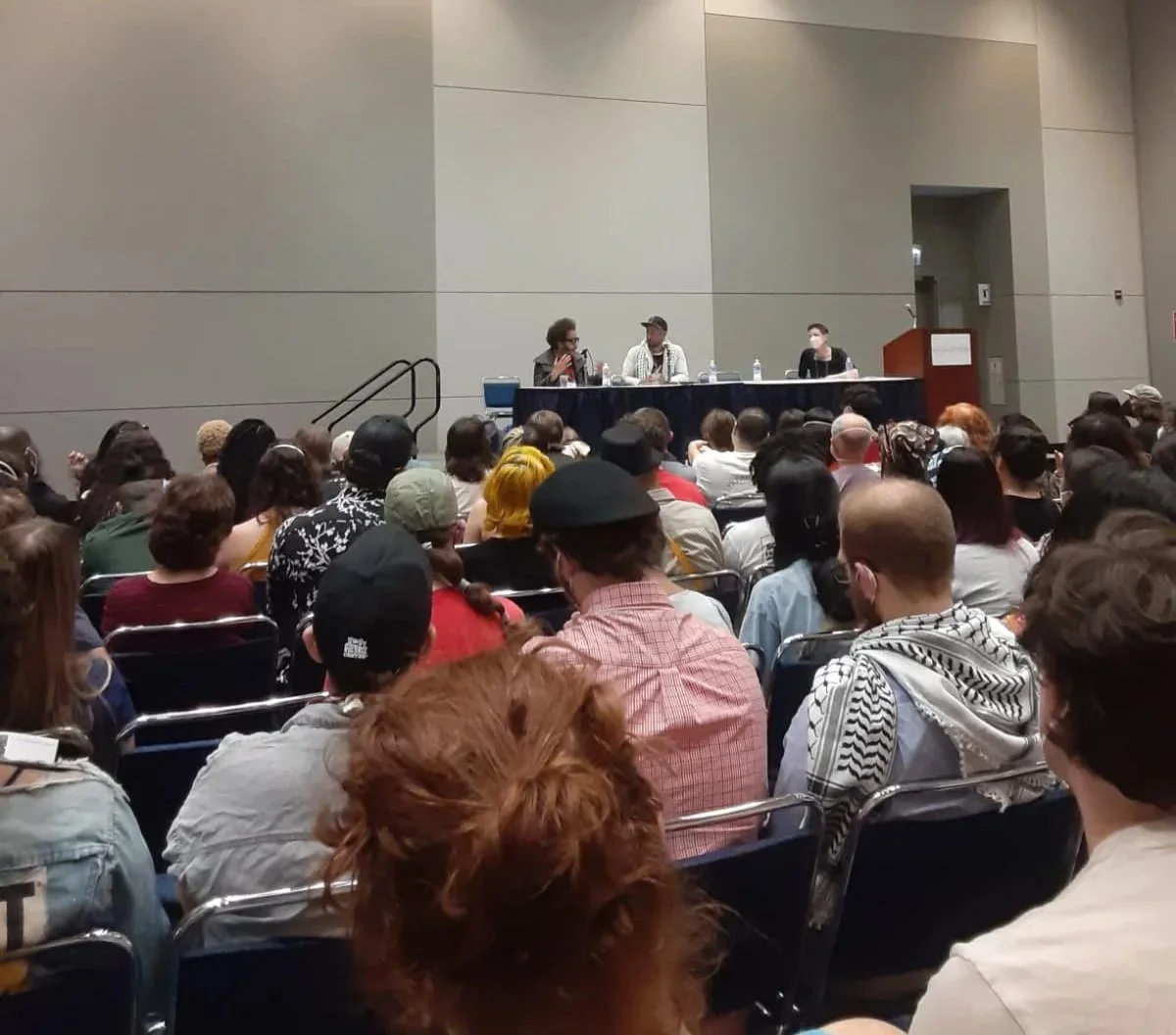 In the official conference program, the organizers highlight politics, education, and community as central pillars, offering a diverse mix of panel sessions, film screenings, and musical performances featuring artists such as Songs for Liberation, a protest music collective from Chicago. To highlight some particularly pertinent key themes, there were plenaries (large gatherings of all conference participants in the evenings), focusing on timely topics such as Labor and Community Organizing Against the MAGA Billionaire Agenda; Fighting Fascism: Lessons from the Colonies; and All Our Movements in this Together.