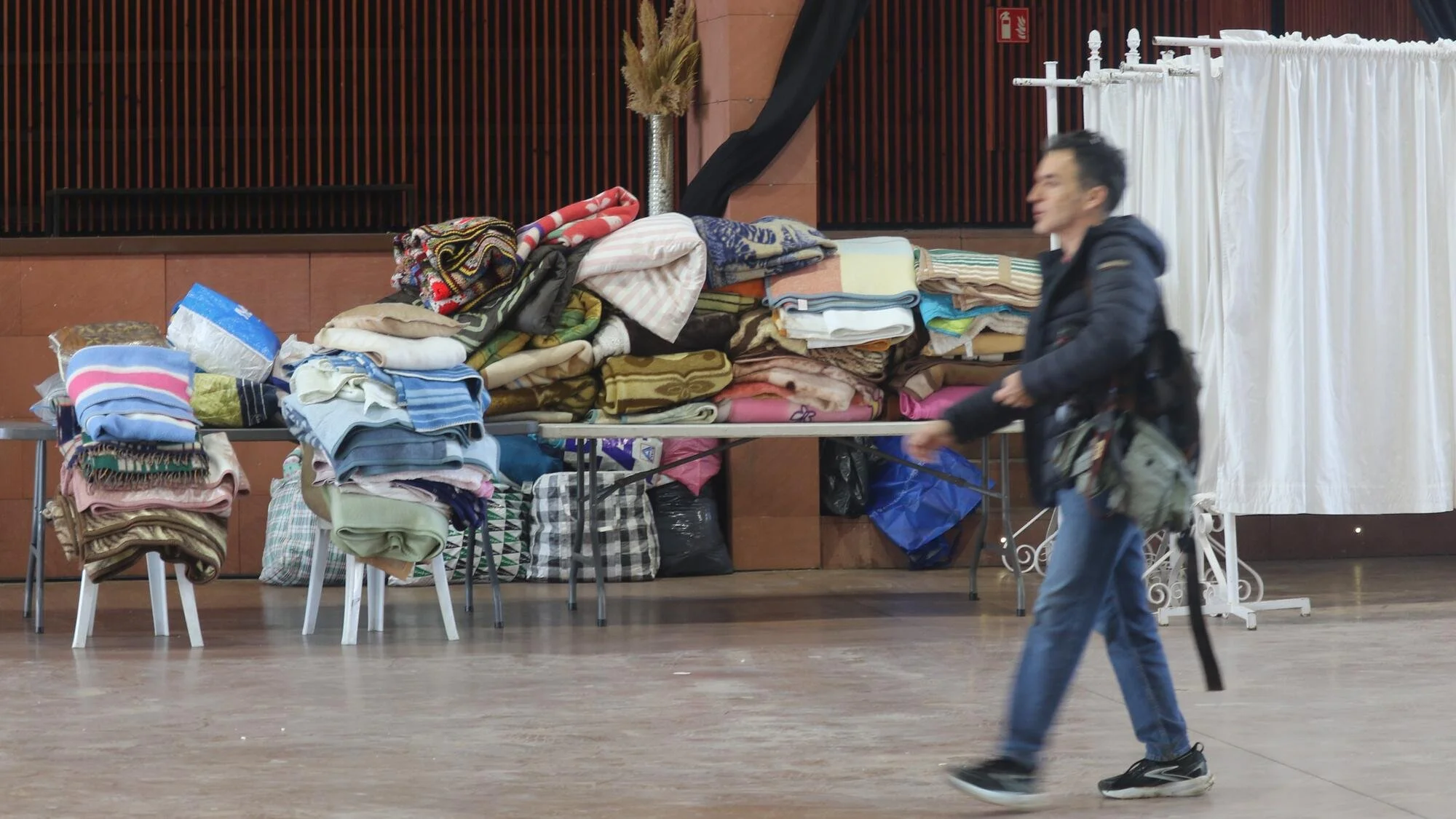 Blankets piled up in the municipal building of Adamuz, where the people who traveled on the crashed trains spent part of the night. (Photo: El Salto)